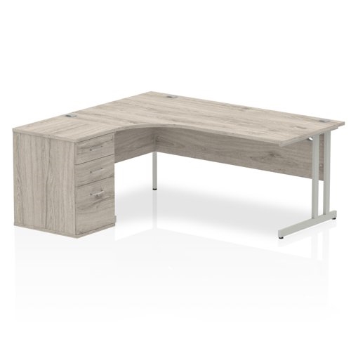 Impulse 1800mm Left Crescent Desk Grey Oak Top Silver Cantilever Leg Workstation 600 Deep Desk High Pedestal Bundle
