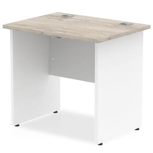 Impulse 800 x 600mm Straight Desk Grey Oak Top White Panel End Leg